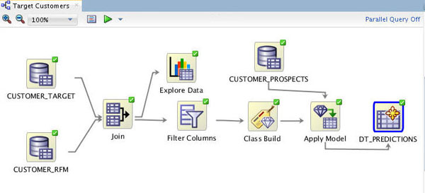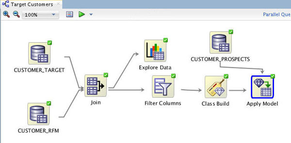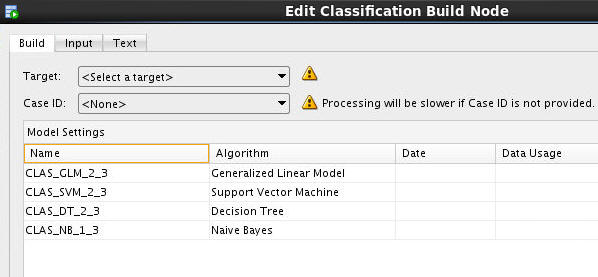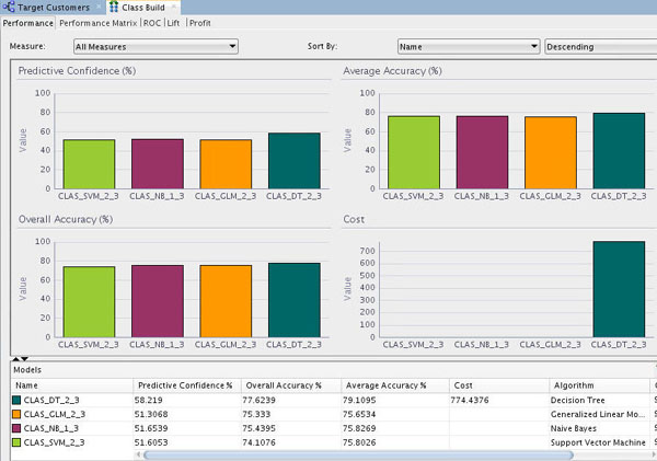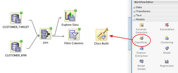 The Workflow creation process of Oracle Data Miner automates many of the difficult tasks during the building and testing of models. It’s difficult to know in advance which algorithms will best solve the business problem, so normally several models are created and tested. No model is perfect, and the search for the best predictive model is not necessarily a question of determining the model with the highest accuracy, but rather a question of determining the types of errors that are tolerable in view of the business goals.