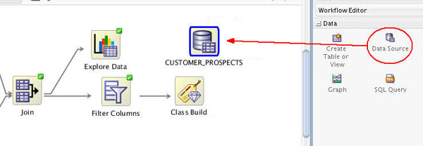 Next, add a new Data Source node in the workflow. Note: Even though we are using the same table as the "Apply" data source, you must still add a second data source node to the workflow.