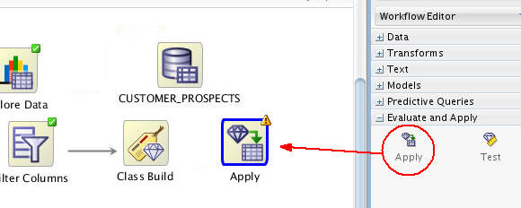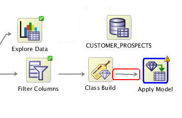 Using the techniques described previously, connect the Class Build node to the Apply Model node, like this