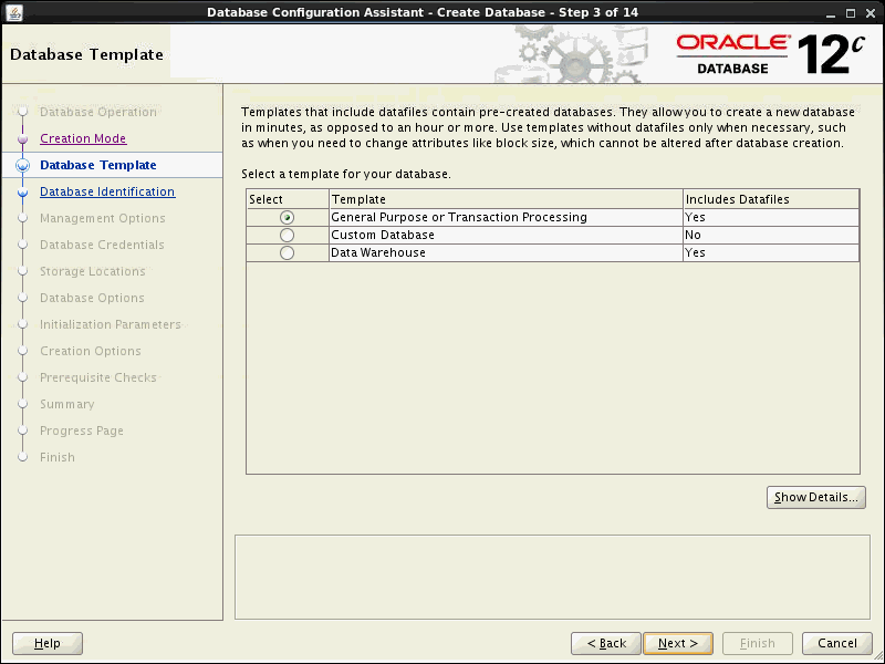 The Database Template window appears. Select "General Purpose or Transaction Processing." Click Next.