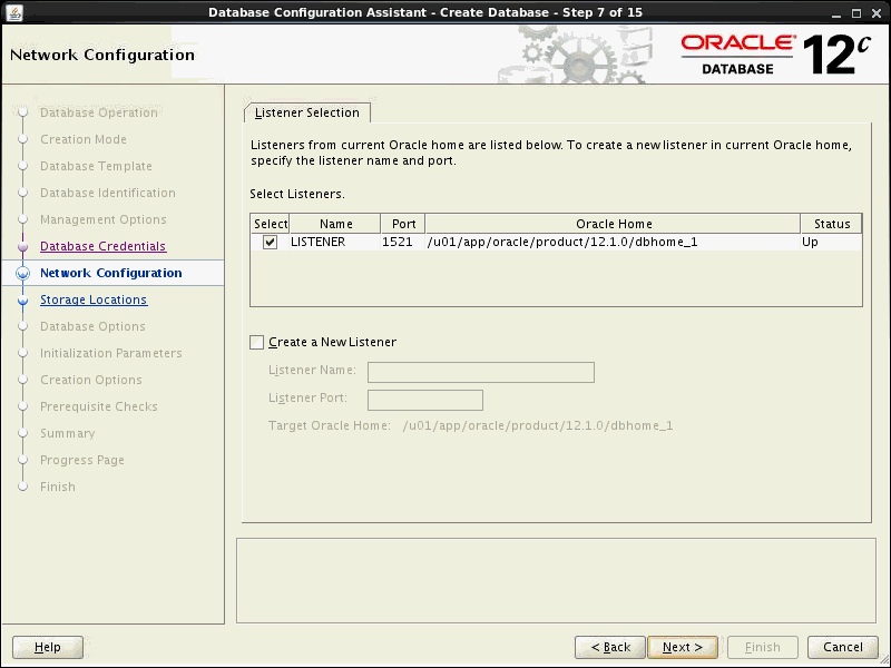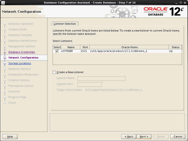The Network Configuration window appears. This page is displayed only if there are any listeners in the current home. Click Next.