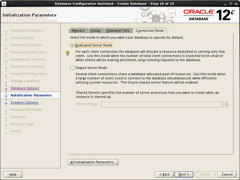 On the Connection Mode tab accept the default of Dedicated Server Mode. Click Next.