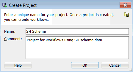 In the Create Project window, enter a project name (in this example SH Schema) and then click OK.