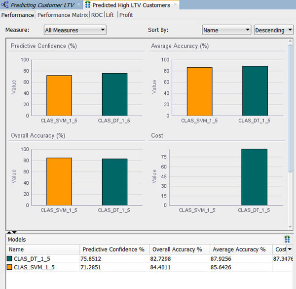 Results: A window opens showing a graphical comparison of the two models in the Performance tab, as shown here: