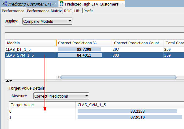 - For the selected model in the upper pane, target value details are provided in the lower pane.