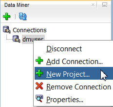 In the Data Miner tab, right-click dmuser and select New Project, as shown here:
