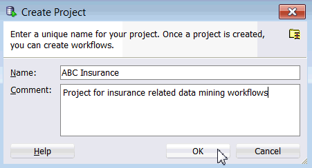 Before you begin working on a Data Miner Workflow, you must create a Data Miner Project, which serves as a container for one or more Workflows.