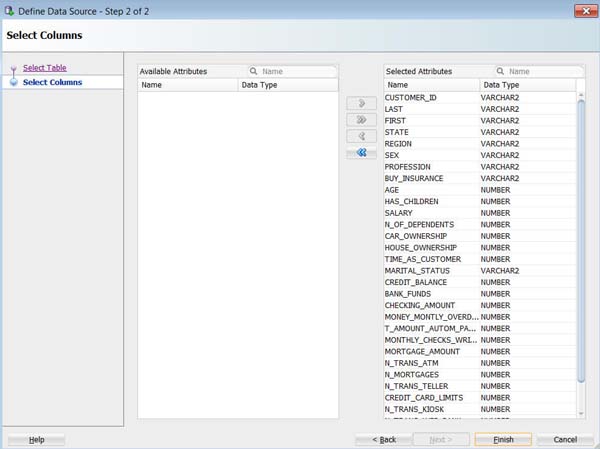 B. In the Define Data Source wizard, select the INSUR_CUST_LTV_SAMPLE table, and then click FINISH.