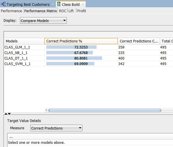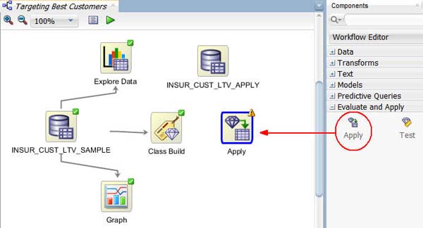 The Workflow creation process of Oracle Data Miner automates many of the difficult tasks during the building and testing of models. It’s difficult to know in advance which algorithms will best solve the business problem, so normally several models are created and tested. No model is perfect, and the search for the best predictive model is not necessarily a question of determining the model with the highest accuracy, but rather a question of determining the types of errors that are tolerable in view of the business goals.