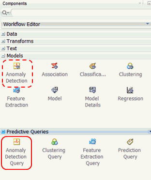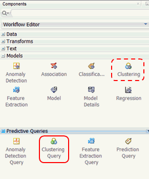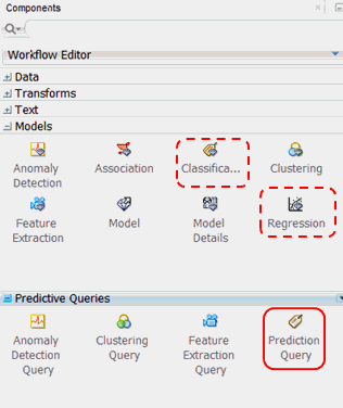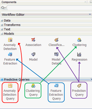 Before getting started, let’s preview the Predictive Queries node group in the Components pane. As shown below, the Models and Predictive Queries node groups are opened.