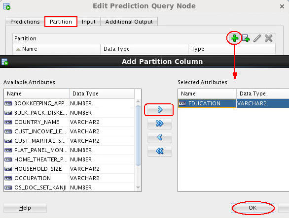 Note: This definition instructs the Data Mining server to build a unique model for each distinct EDUCATION value. Because the model uses data only from that partition, it can potentially predict cases more accurately than if no partition were selected.