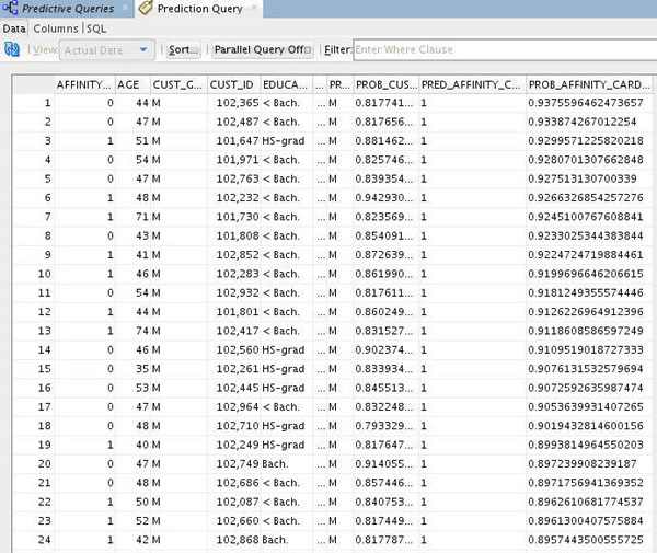 This tutorial covers the use of Predictive Queries against mining data by Oracle Data Miner 4.1.