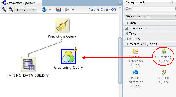 Add a Clustering Query node to the workflow, as shown here: