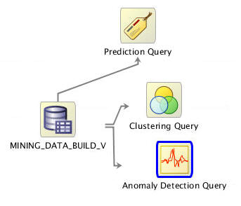 When defining an Anomaly Detection Query node, you specify similar attributes to an Anomaly Detection model, but when the query option is run, the Data Mining engine performs dynamic scoring of the anomaly detection query without having to pre-define a model.