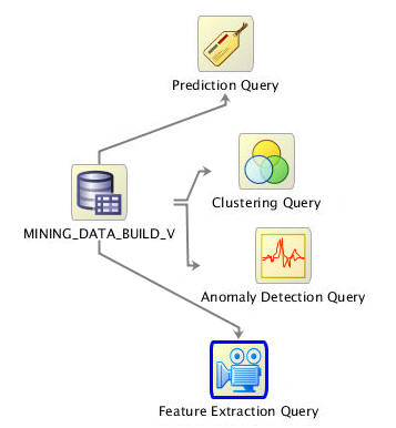Feature Extraction models create new attributes (features) by using combinations of the original attribute. For example, you can group the demographic attributes for a set of customers into general characteristics that describe the customer.