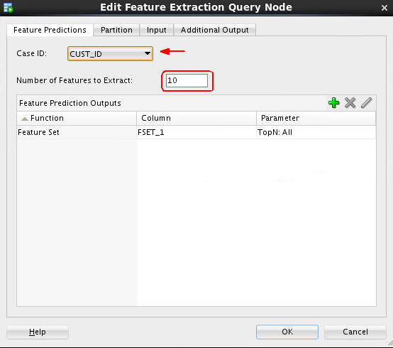 Double-click the Feature Extraction Query node to open the Edit Feature Extraction Query Node window. Then, perform the following on the Predictions tab:
