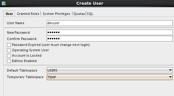 E. Still in the Create User window, select the Quotas tab and click the check box to set the default USERS Tablespace to Unlimited.