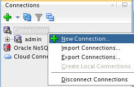 In the SQL Developer Connections tab, right-click Connections and select New Connection from the pop-up menu: