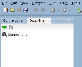 Description of this image Result: The Data Miner tab appears next to the SQL Developer Connections tab, like this.