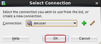 B. Select dmuser from the Connection list as shown here. And then click OK.