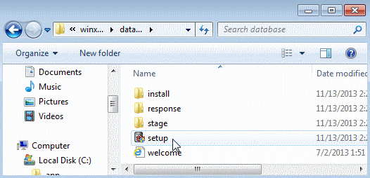 The software files are extracted. Expand the winx64_12c_database_1