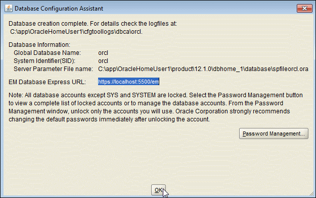 Enterprise Manager Database Express. You can click "Password