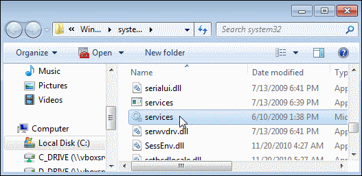 using Windows Explorer. Double-click services.