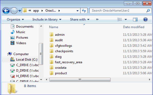 folder) and the Oracle Database software (in the product
