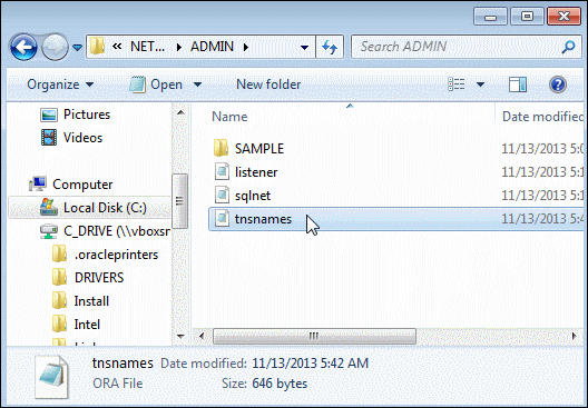 Double-click tnsnames.ora to view the