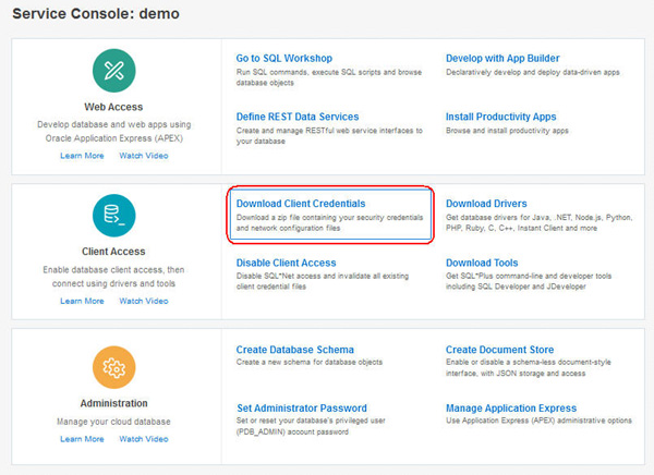 Then, toggle back to the Service Console window. In the Client Access section click the Download Client Credentials option, as shown below: