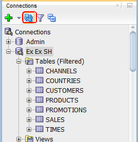 When the script completes, close the sales.sql worksheet window, and then click the Refresh tool in the Connections tab to view all of the tables.