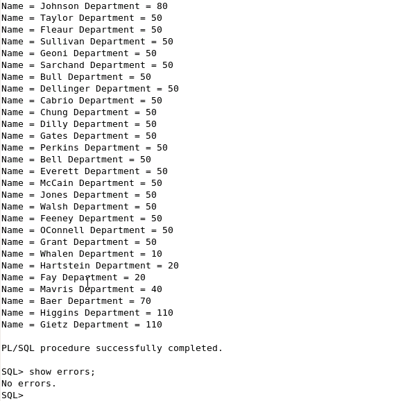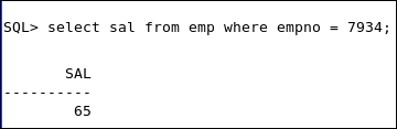 Re-execute the following query: select sal from emp where empno = 7934; Notice the change in the salary is now 65.