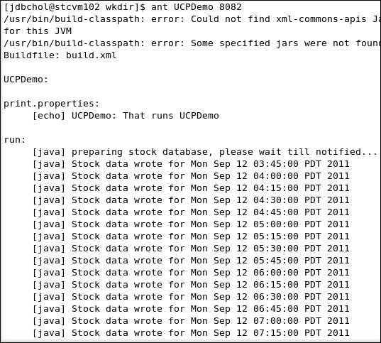 In your terminal window, from the wkdir directory, use the ant tool to build and run the UCPJava code. ant UCPDemo 8082