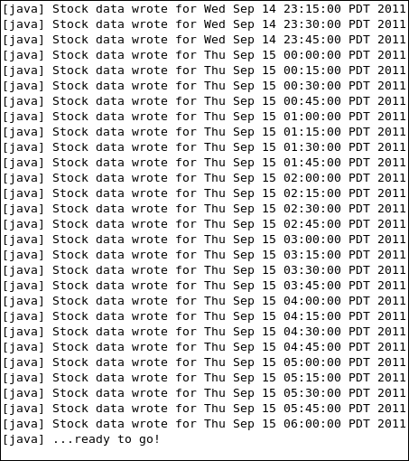 Upon startup the UCPDemo will spend a few seconds to store the stock price data onto the database, so wait until the message "...ready to go!" is printed out on the screen.