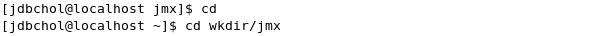In your terminal window, change to the wkdir/jmx directory by issuing these commands: cd