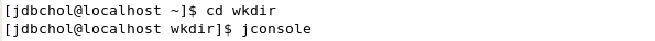 Start a terminal window. Change to the wkdir directory. Start JConsole.