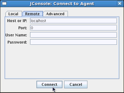 Enter the hostname or IP of your server. For this demo localhost has been entered as the machine to be monitored. Enter 0 as port. Click Connect.