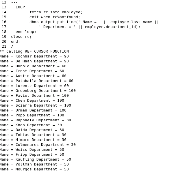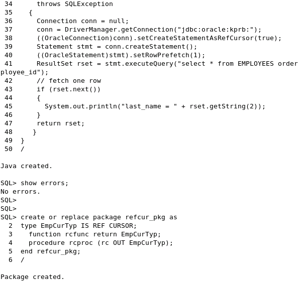 Examine the ResultSet.sql script. Run the ResultSet.sql script to map REF Cursor to java.sql.ResultSet. @ResultSet