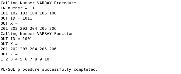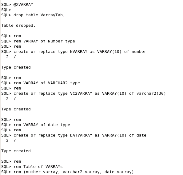 Execute the NumVarray.sql script to map VARRAY to Scalar SQL Type, Number. @NumVarray