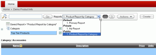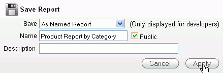 Enter Product Report by Category for Name and check the Public check box and click Apply.