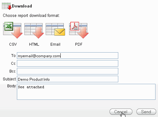 Select the Email format. To send the report via email you can enter an email in the To field and click Send. In this case, you will click Cancel.