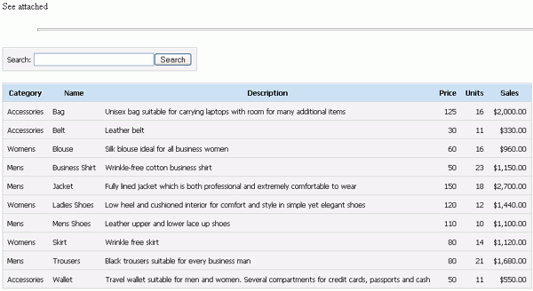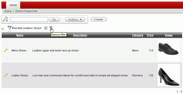 Notice that only the rows where 'shoes' is found are listed. A filter was also created above the report data.