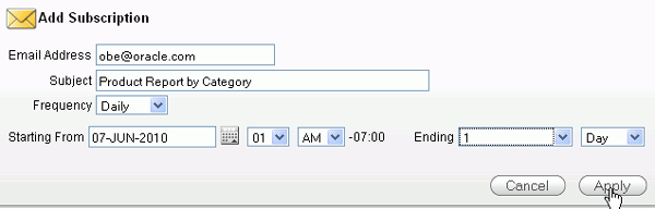 You only want the subscription to last 1 day. Select 1 for Ending and make sure Day is selected from the drop down list and click Apply.