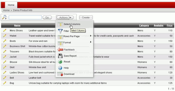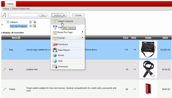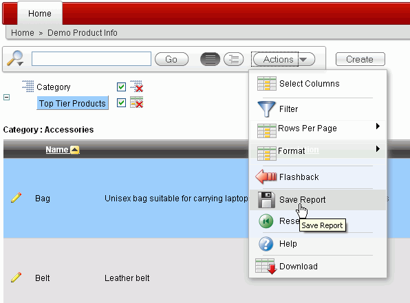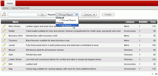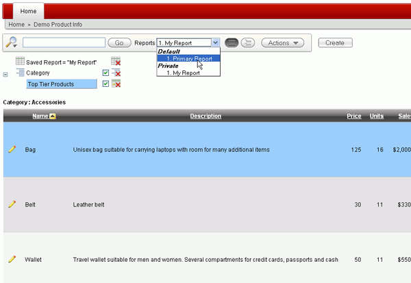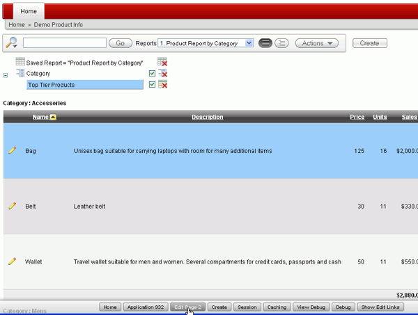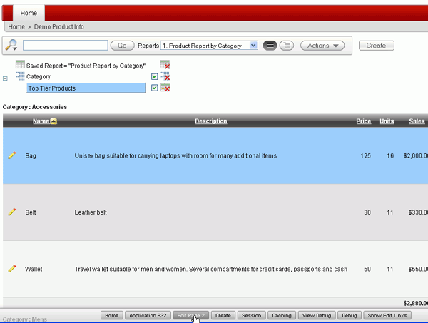 This tutorial shows the developer how to create and customize an Interactive Report for an end user.