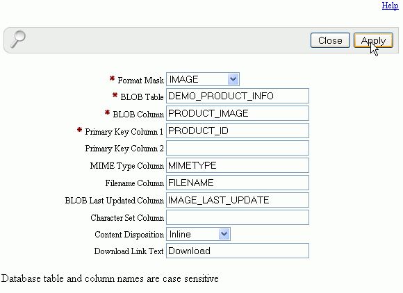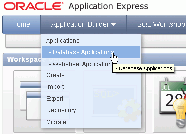 Another feature shown in this tutorial is Application Date Format. You can define a date format that will be used throughout your application. This date format will be used to alter the NLS_DATE_FORMAT database session setting prior to showing or submitting any page within the application. This format is used by all reports showing dates and is also picked up by form items of type 'Date Picker (use Application Date Format)'. This can be set using: