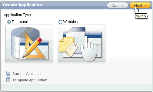 Select the drop down next to Application Builder and select Database Applications.
