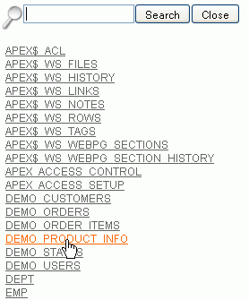 Select the DEMO_PRODUCT_INFO table.