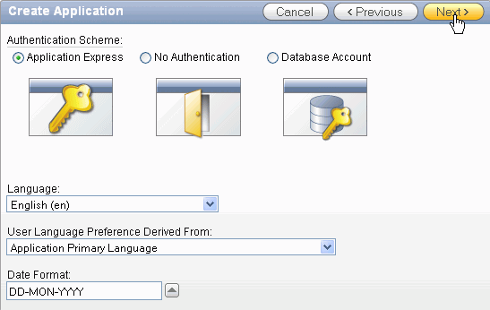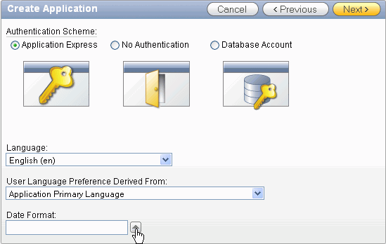 You want to accept the default authentication scheme. You can specify a Date Format for the entire application. Click the up arrow for Date Format.