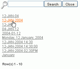Select the 12-JAN-2004 link. Note: By setting the date format when you create the application, the same date format will be used for all report columns and items.