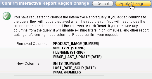 Click Apply Changes to confirm the report region changes in the query.